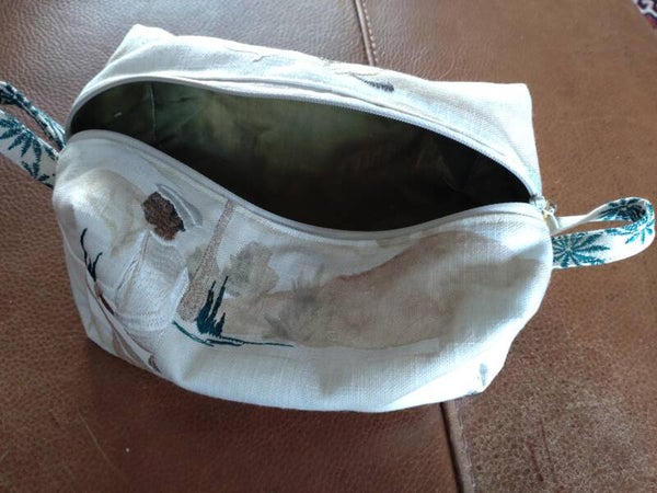 handmade bag in beautiful embroidered fabric depicting arab man on horse and desert scene
